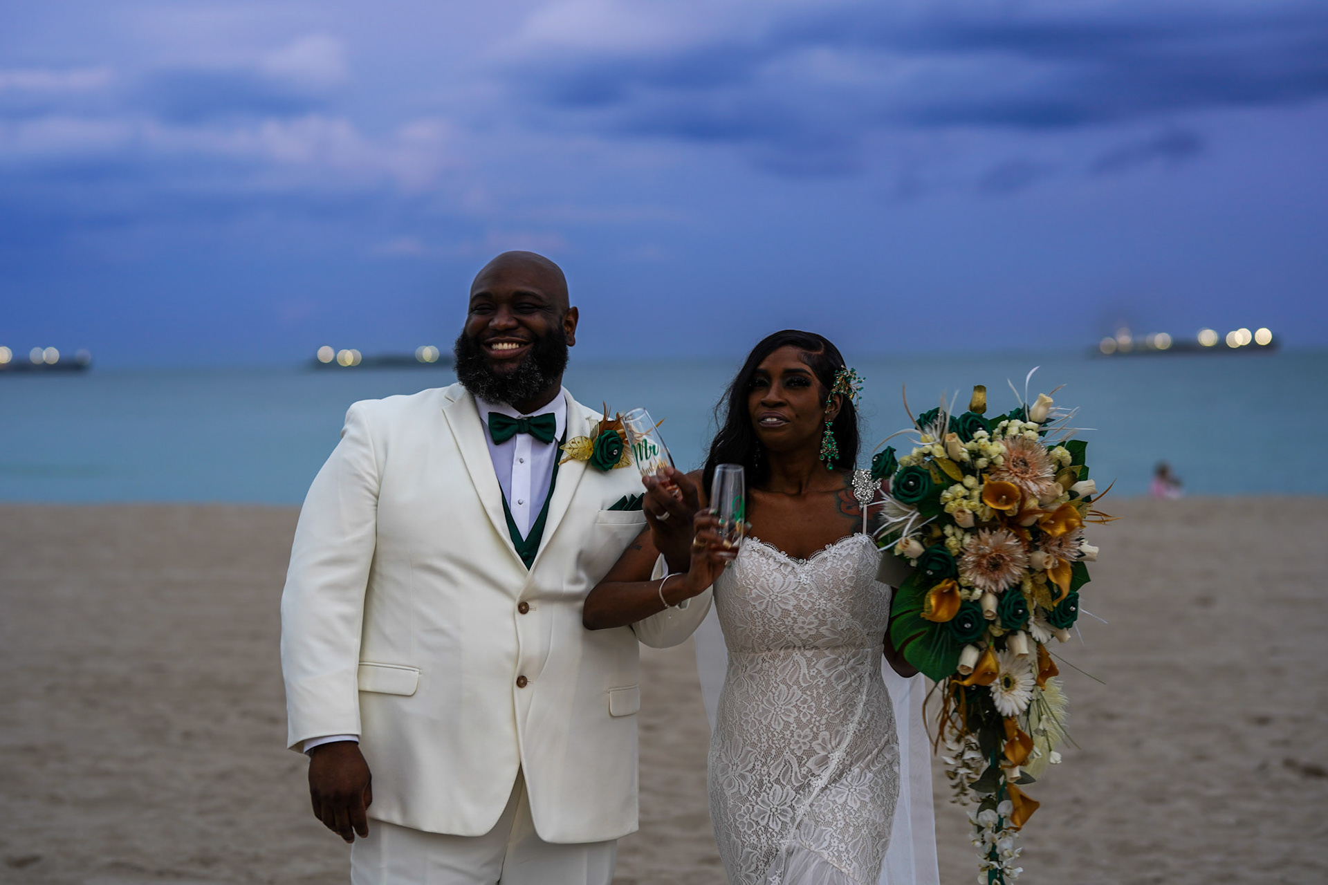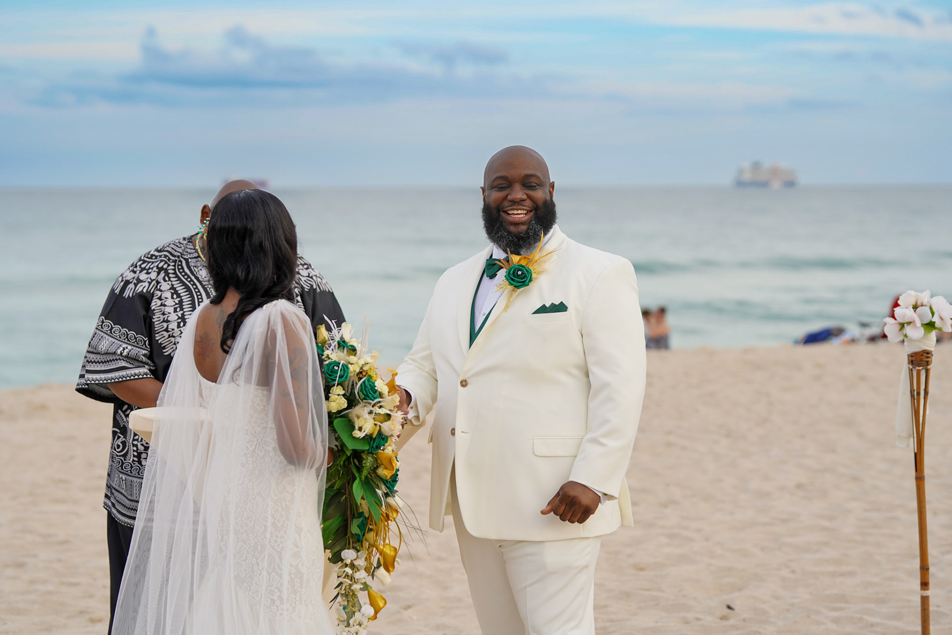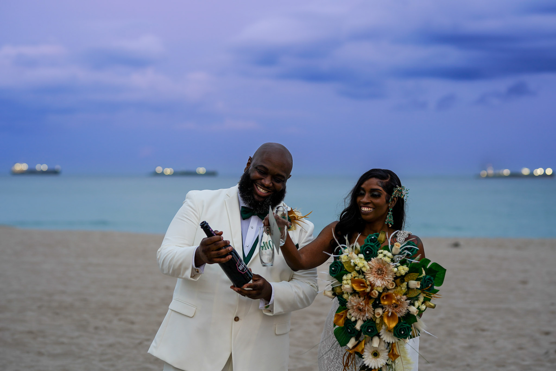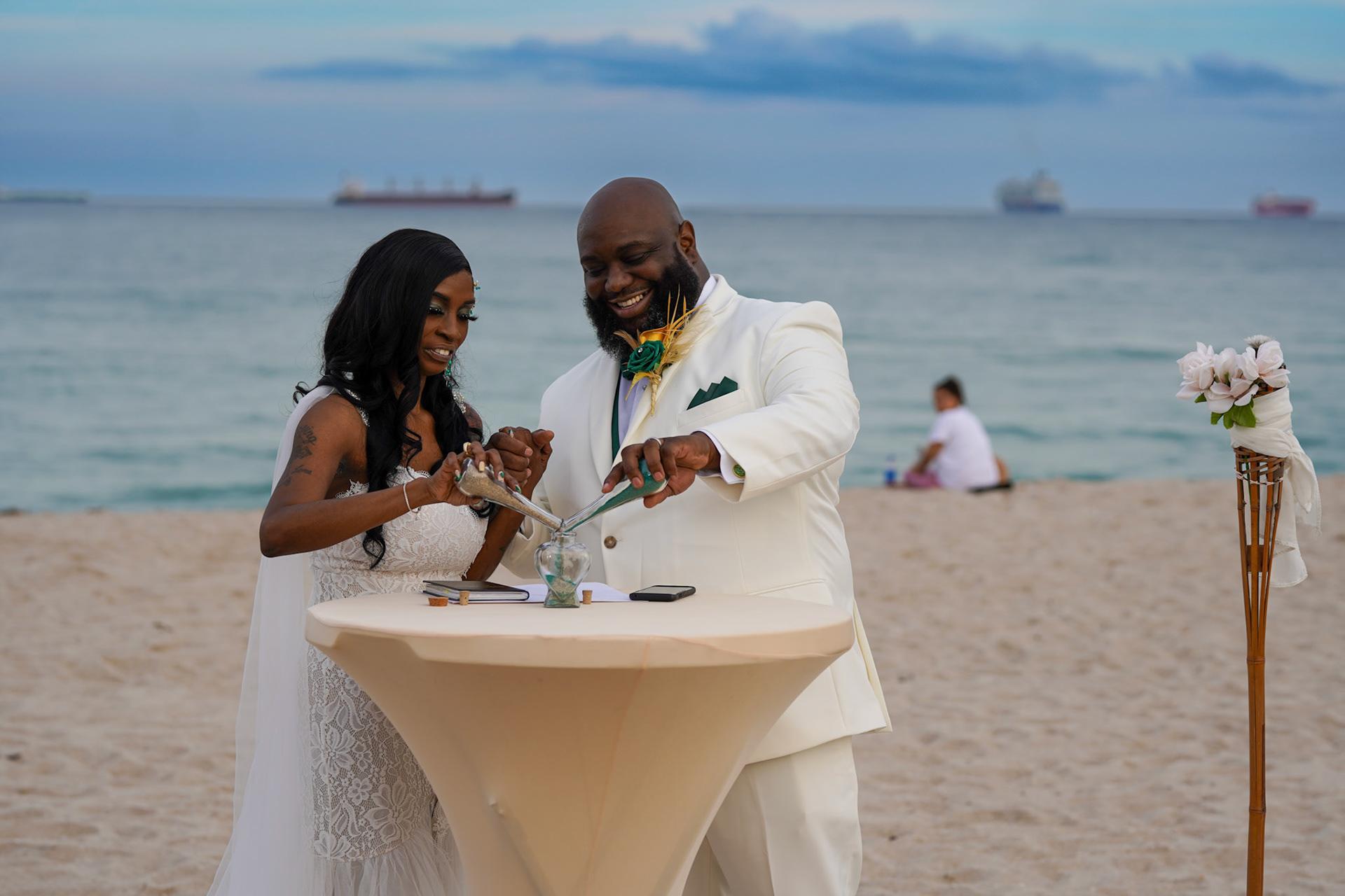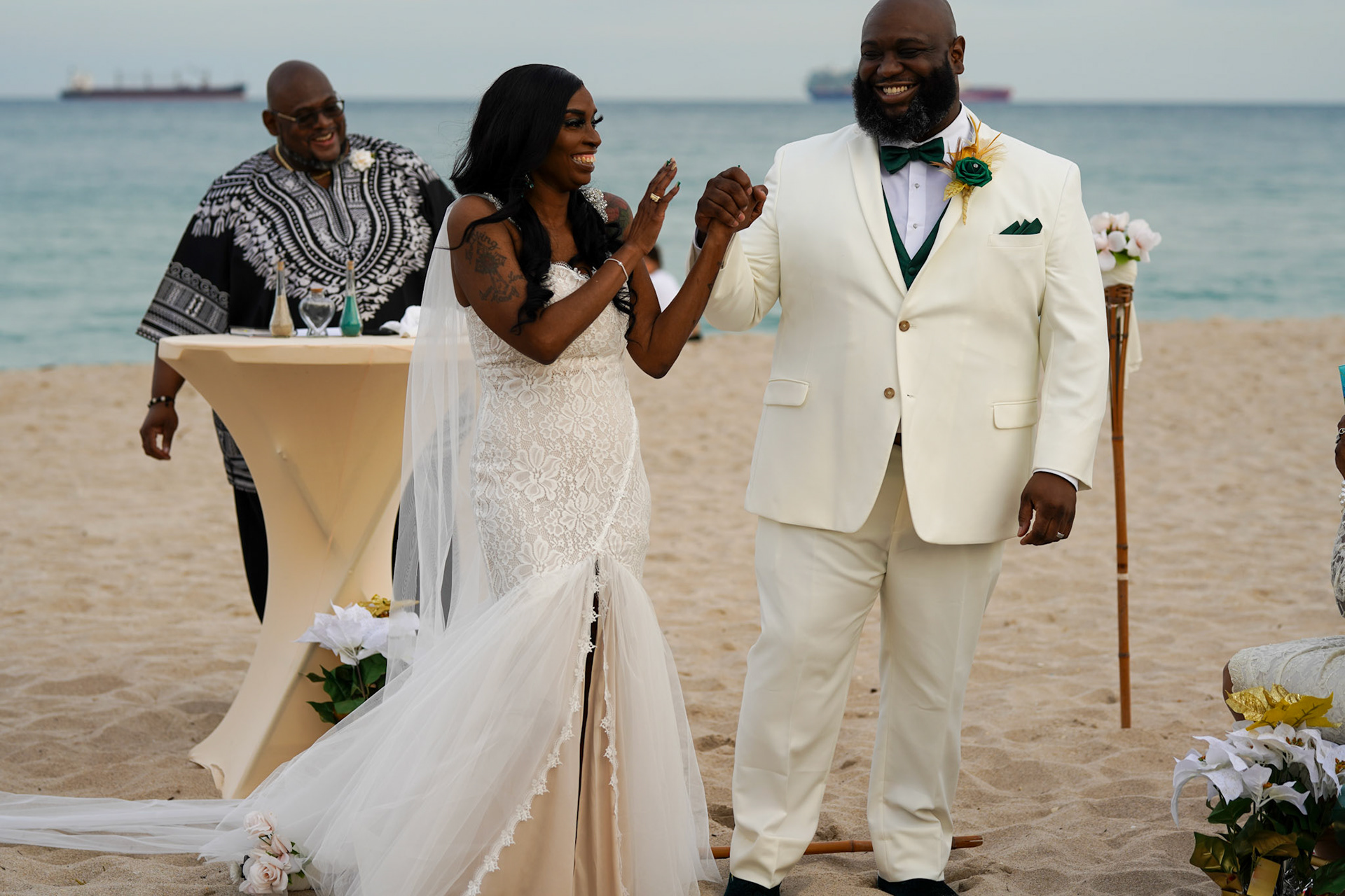 Beautiful sunset wedding ceremony on the beach in South Florida, December 2022