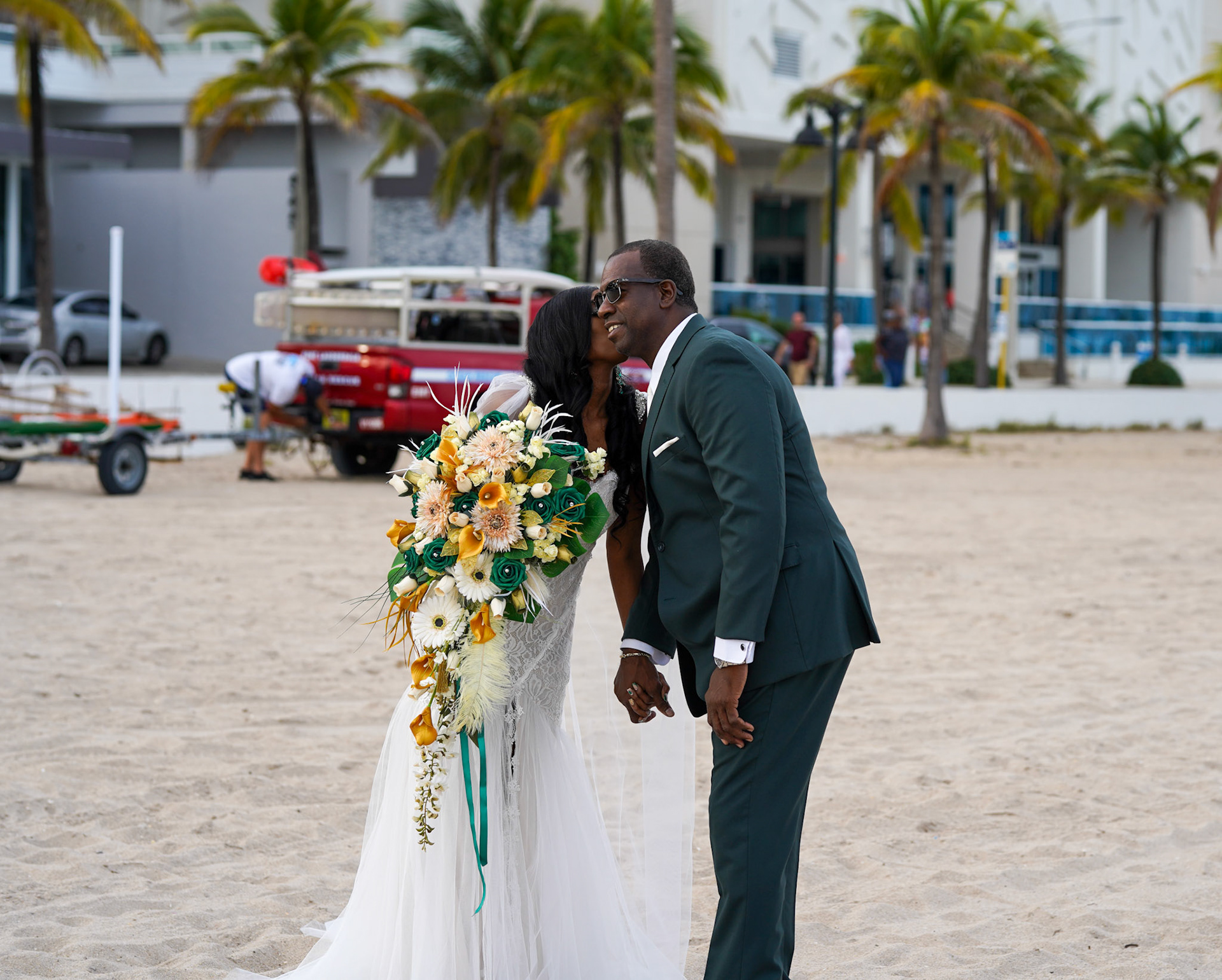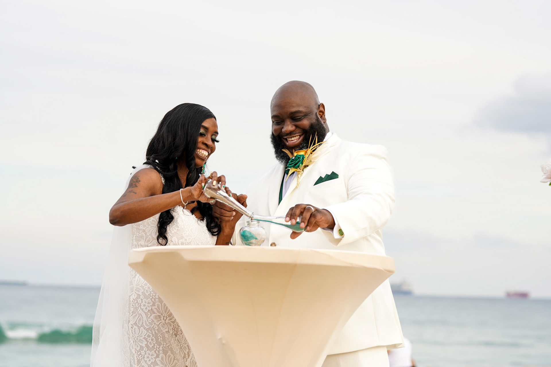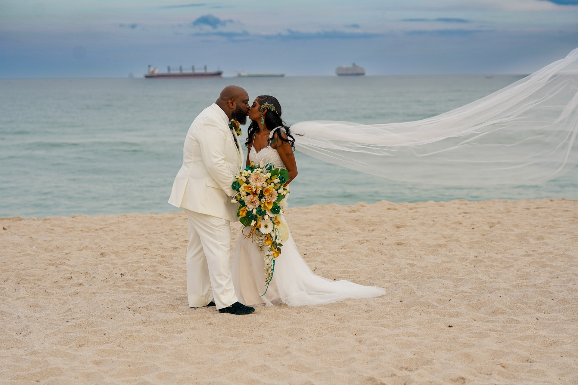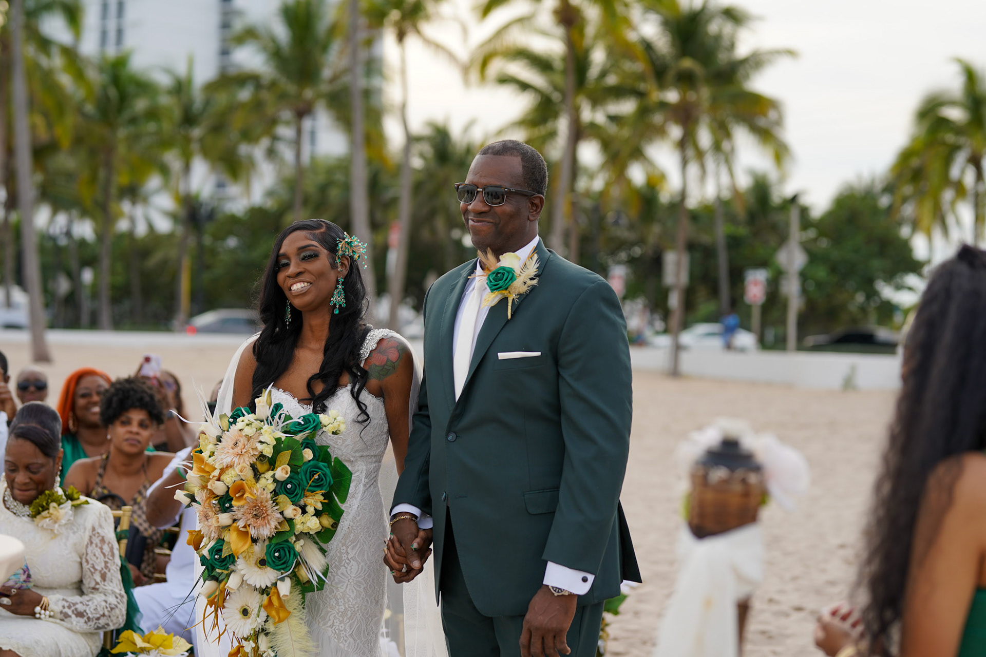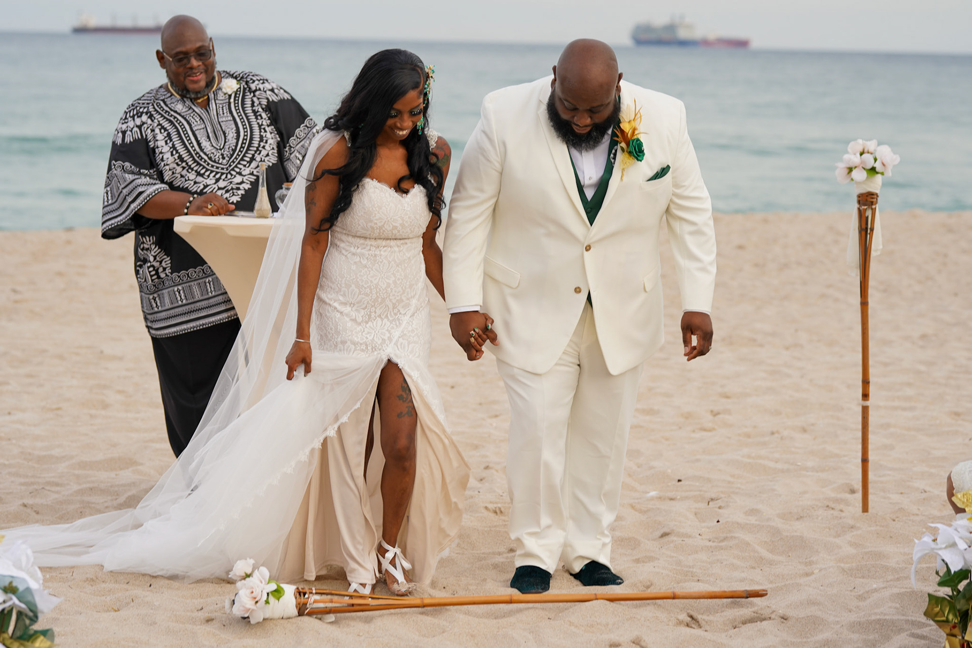 Beautiful sunset wedding ceremony on the beach in South Florida, December 2022